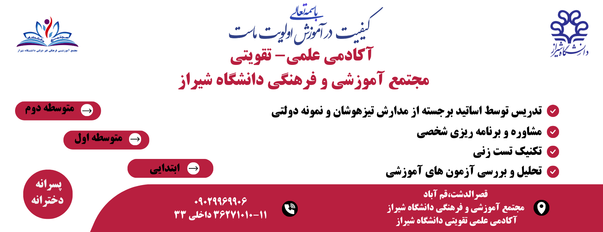 برگزاری سومین آزمون مشترک سنجش آمادگی امتحانات نهایی در دبیرستانهای پسرانه و دخترانه دانشگاه شیراز