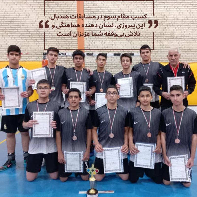 کسب مقام سوم تیمی هندبال متوسطه را به مدیرت مجتمع، مدیر متوسطه اول ،همکاران ،دانش اموزان واولیا تبریک می گوییم