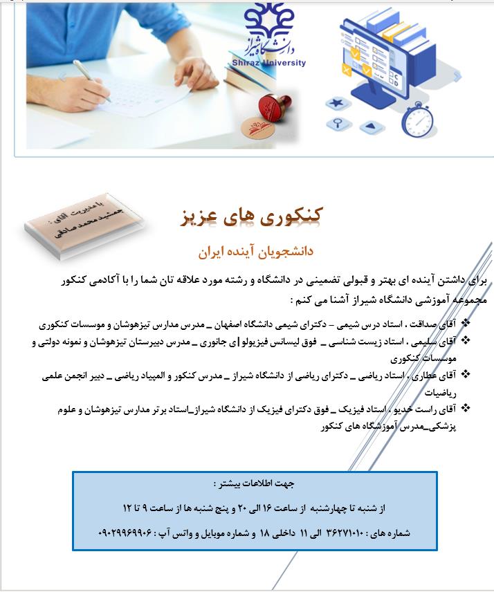 شروع ثبت نام آکادمی کنکور مجتمع آموزشی،فرهنگی دانشگاه شیراز