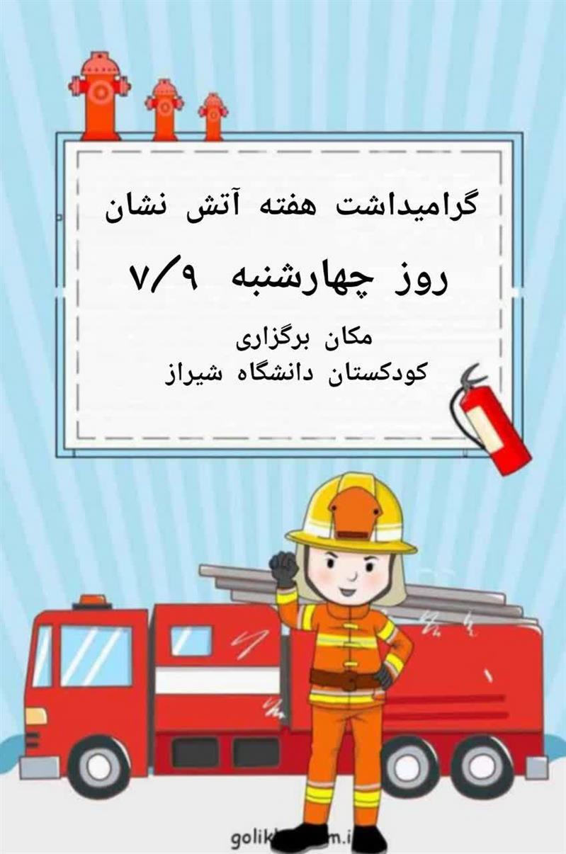 به اطلاع اولیای گرانقدر می رساند: مرکز کودکستان دانشگاه شیراز در نظر دارد به مناسبت هفته گرامیداشت آتش نشانان قهرمان، از سازمان آتش نشانی دعوت به عمل آورد.