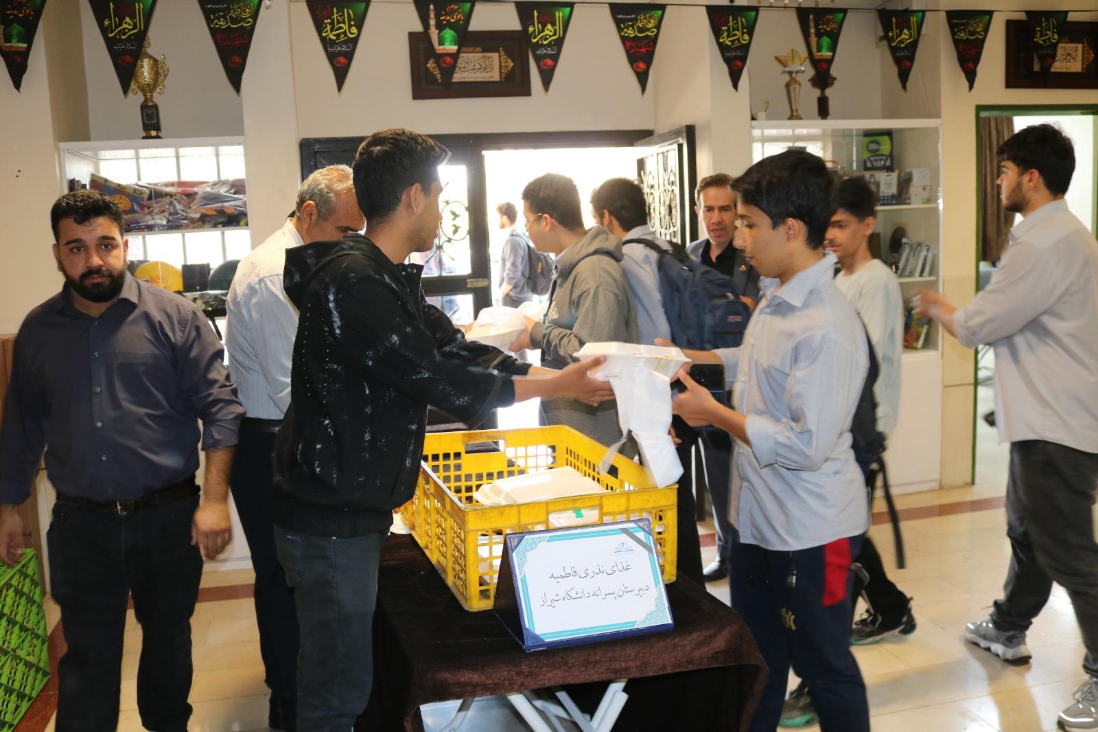 در ادامه این مراسم، به نیت حضرت زهرا(س)، غذای نذری توسط بانی خیر تهیه و در میان دانشآموزان و همکاران فرهنگی توزیع شد.
