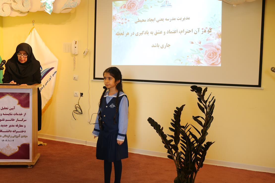 در پایان این مراسم، حاضران ضمن قدردانی از تلاشهای دلسوزانه مدیر سابق، بر اهمیت تداوم و تقویت رویکردهای آموزشی، تربیتی و فرهنگی در دبستان دخترانه دانشگاه شیراز تأکید کردند و ابراز امیدواری نمودند که با مدیریت جدید، مسیر رشد، تعالی و ارتقای کیفی این مجموعه آموزشی با قوت بیشتری ادامه یابد.