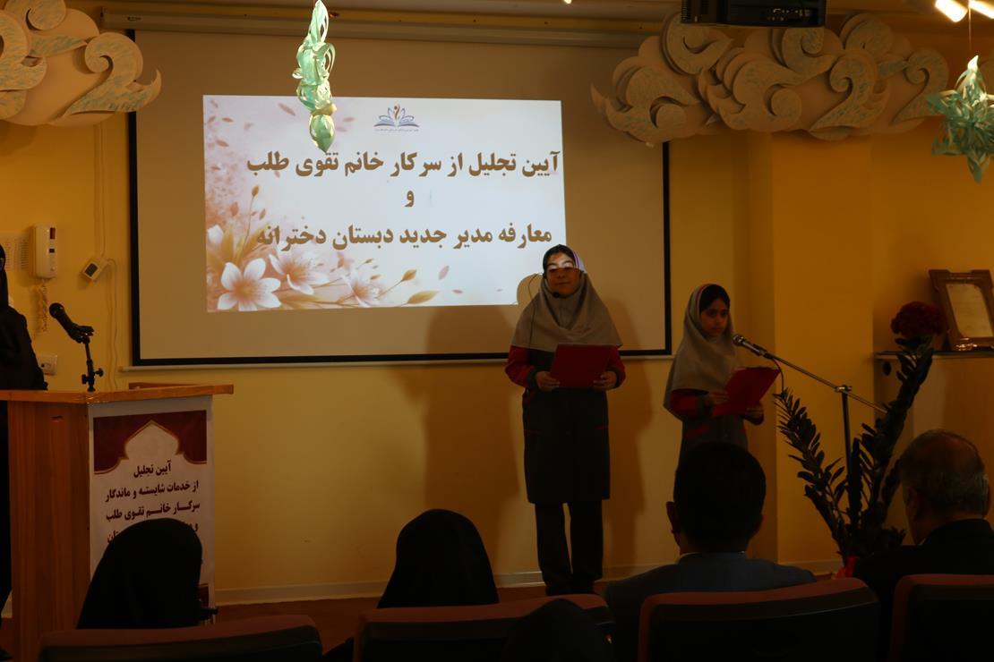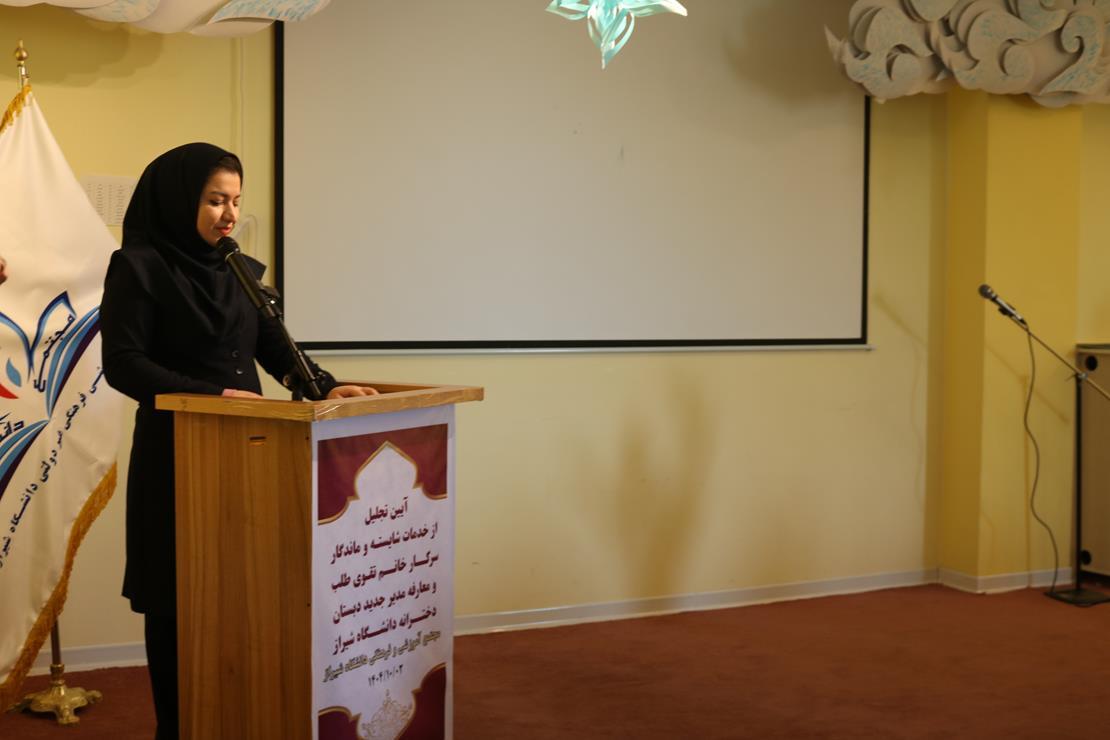این جلسه در سالن گلها کودکستان برگزار شد و در فضایی صمیمی و در عین حال رسمی، از زحمات و خدمات ارزشمند سرکار خانم تقویطلب، مدیر پیشین دبستان دخترانه دانشگاه شیراز، تقدیر به عمل آمد. در ادامه، سرکار خانم کلایی بهعنوان مدیر جدید دبستان دخترانه دانشگاه شیراز معرفی شدند و برای ایشان در مسیر جدید مدیریتی آرزوی موفقیت شد.