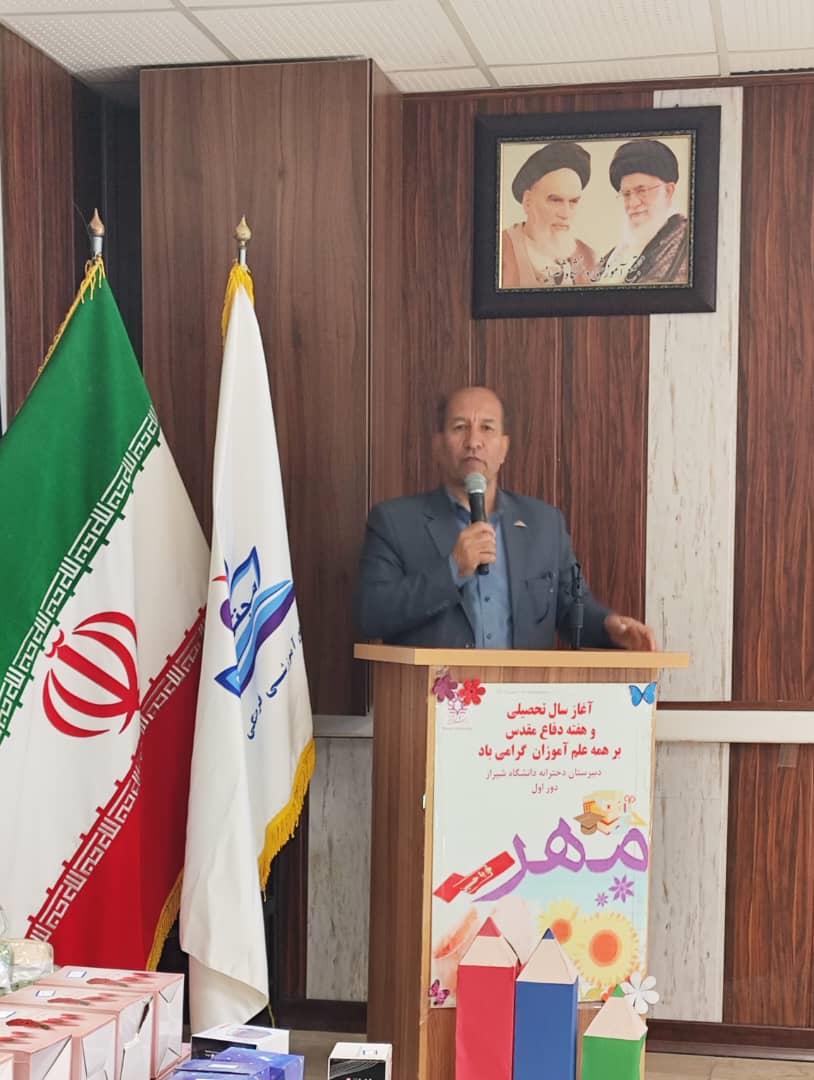 حضور جناب آقای محمد صادقی ریس محترم مجتمع آموزشی فرهنگی دانشگاه شیراز در جشن آغازین دبیرستان دخترانه دوره اول دانشگاه.