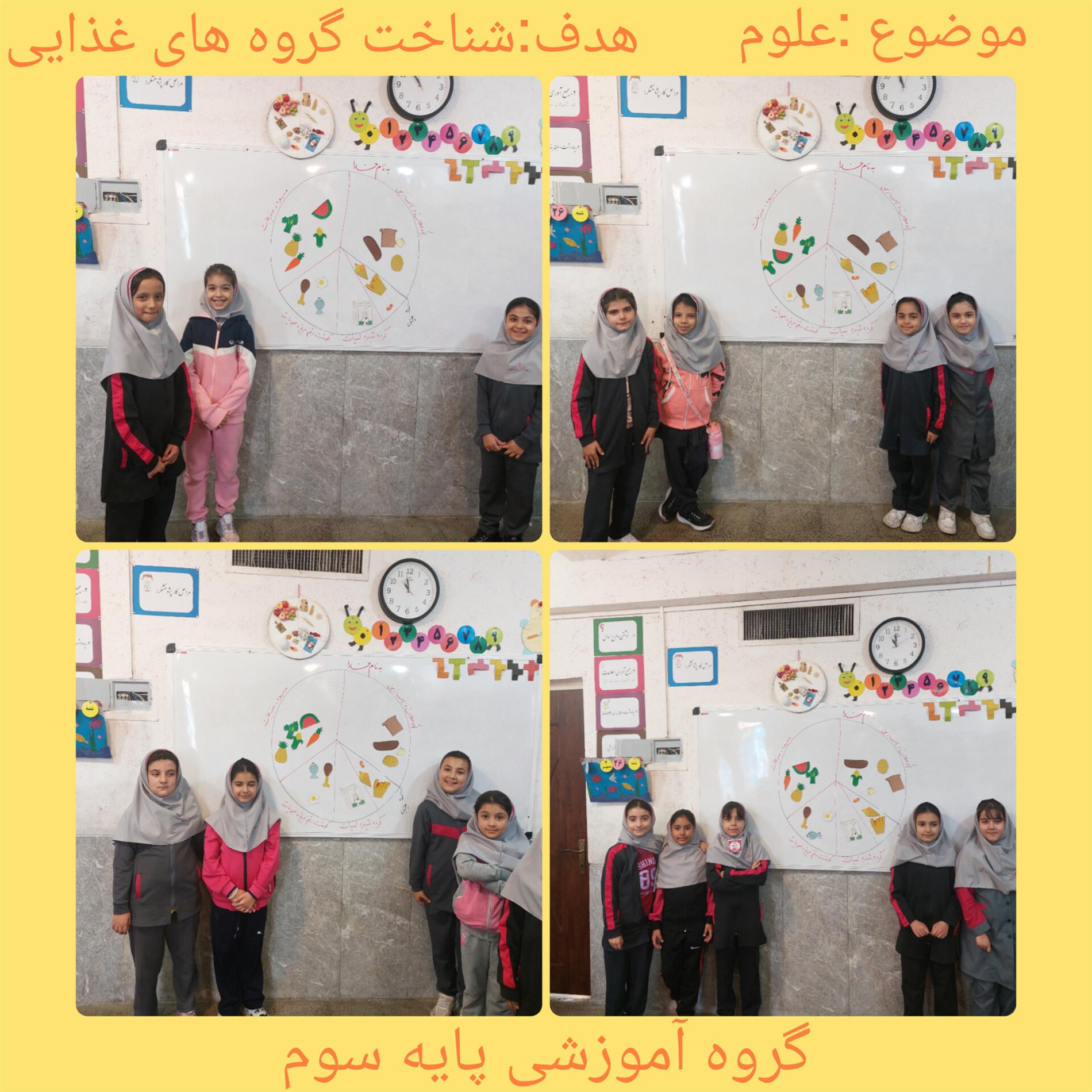 کار گروهی قراردادن خوراکی ها در گروه خود  به صورت فعالیت جذاب و شاد جهت تثبیت یادگیری آموخته های دانش آموزان