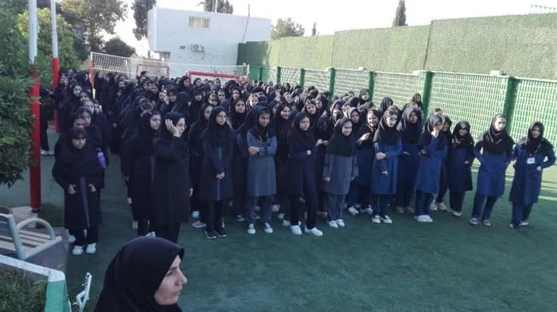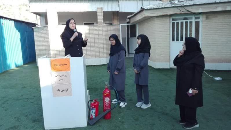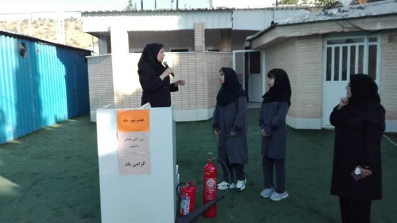 آموزش اطفای حریق در صف صبحگاهی به مناسبت روز آتش نشانی